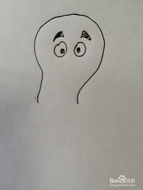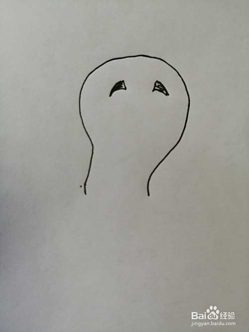 第三步,然后继续画出可爱的灯泡的两只黑色的大眼睛,眼睛又大又圆。