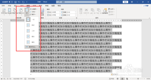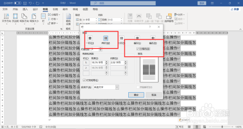 弹出窗口,选择栏的数量,勾选“分隔线”。