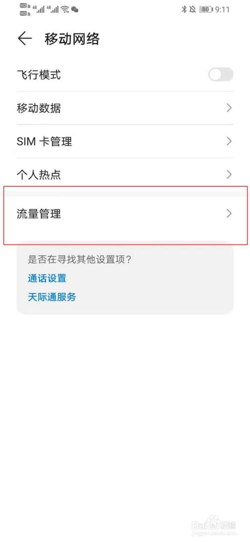 3、打开“移动网络”之后,在新的界面找到“流量管理”