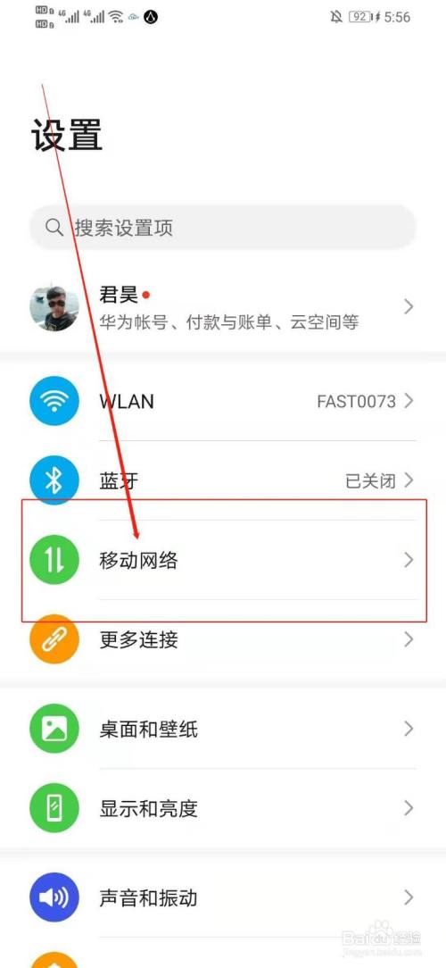 接着在“设置”中,向上滑手机,找到“移动网络”选项,如图框选出来的