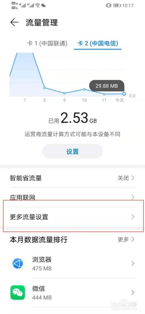 点开“流量管理”,在新的界面找到“更多流量设置”,如图