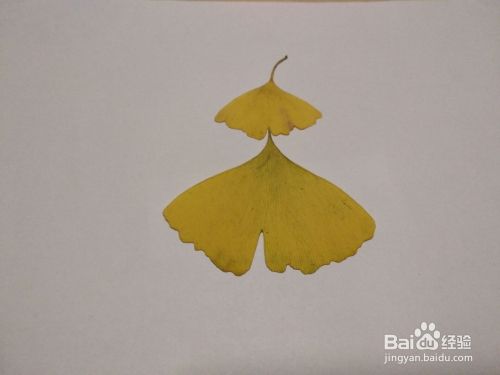 接着在这片小点的银杏叶上面再放一片更小的树叶,这样看着像不像一个穿裙子的女孩的背影呢。