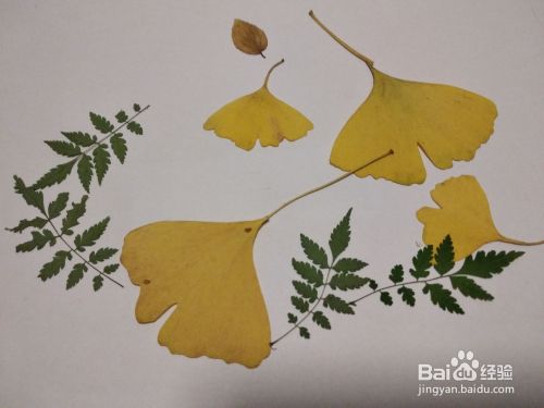 我们先取一片银杏叶,把叶片上面蒂把从根部折断,然后摆放在白纸上。