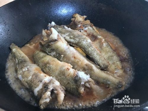 6.放入煎好的鱼,加一点糖和清水焖至鱼熟透。