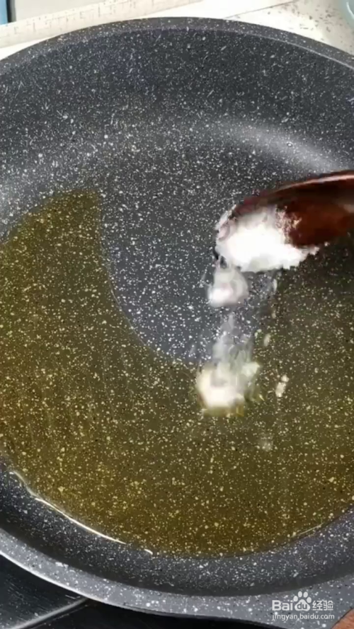 我们将鳝鱼处理干净切成段,锅中烧油,放入盐,再下入鳝鱼煸炒至变色