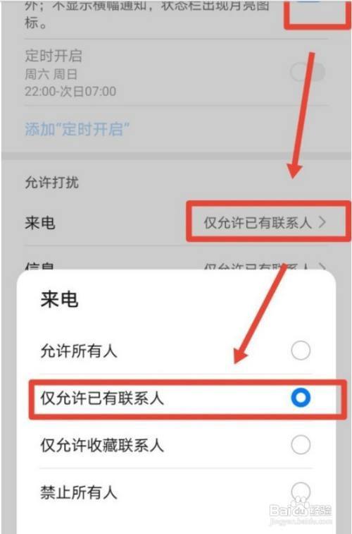 最后我们将免打扰模式打开,然后在选择来电允许人员为已有联系人即可。