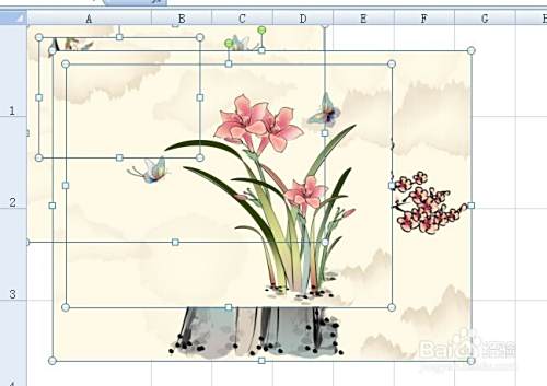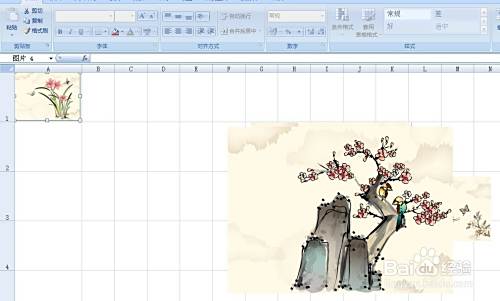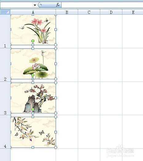 返回Excel表,可以看到图片重叠在一起,找到A1单元格要放的图,然后按住:“Shift+Ctrl",用鼠标拖拽到合适大小