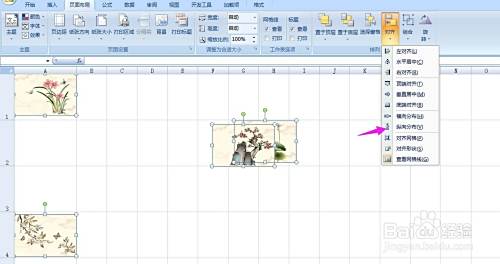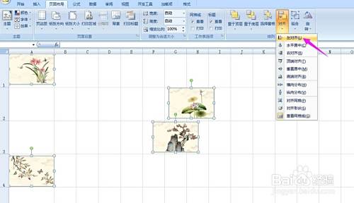 最最后一步,定位对象,全选图片,点击菜单栏中的”页面布局“---”对齐“