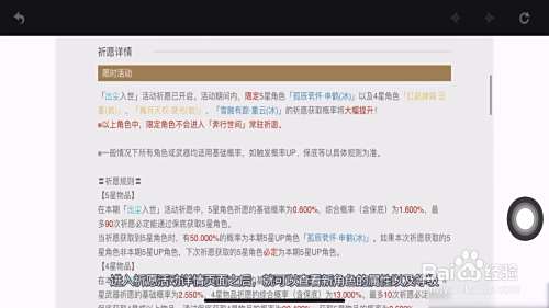 进入原神活动祈愿页面,查看出的新角色有哪些,在角色详情页面中即可查看角色属性、星级、抽奖概率,以下是详细的操作步骤: