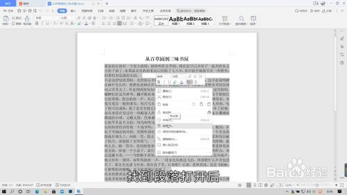 首先选择全文 单击开始选项卡中的段落组 右下角的对话框启动器 或者点击右键找到段落打开