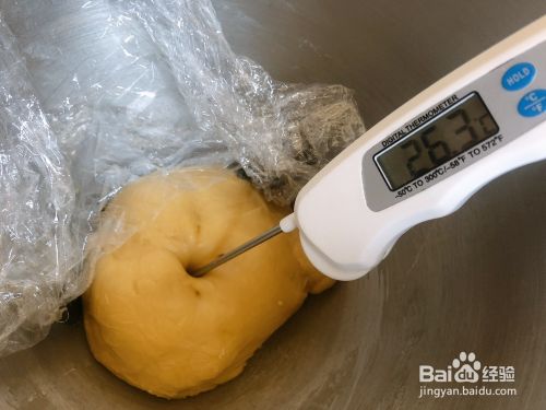 因为夏天热,和面过程中面团会极速升温,所以建议揉一会面时,就用温度计来测量下面团温度,一般最适宜温度是28以下,如果达到29、30度以上,最好是赶紧包好保鲜膜,连同揉面桶揉面钩再放冰箱冷冻一会降温。——冬天忽视。
