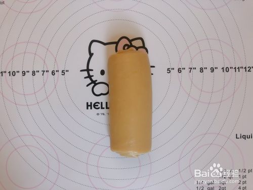 同样的从上往下卷,最后卷出来的圈数很多。——普通吐司是卷2.5-3圈,这里是要求圈数多点。