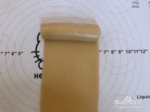 从上往下卷。直接卷,不需要用手压紧。——如果面团翻面,自动拉的很长,或者太过柔软,不好操作的,就说明液体加多了,下次要减量。——正常的是摸起来略有点油油的,不粘手不粘揉面垫的,卷起来很好操作的。
