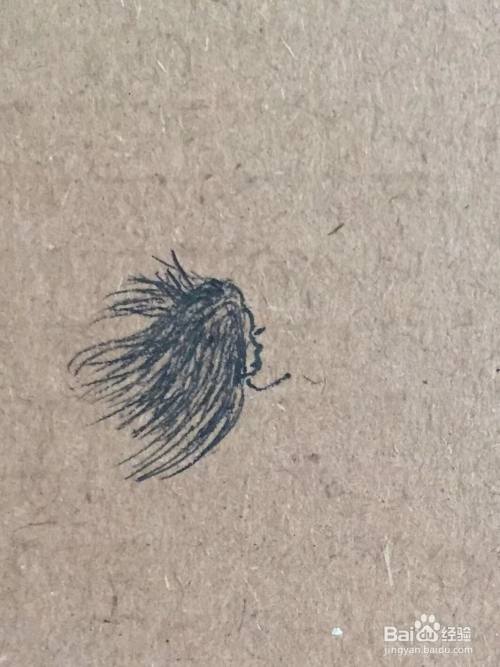 首先在纸上,黑色勾线笔画出梦菲的头部发型,用笔勾勒发丝纹理。我们画出梦菲的身体轮廓和T恤。在其袖口处画出双臂和双手。