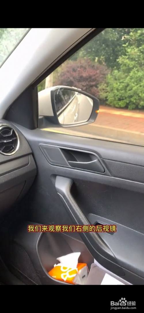 3.换入一挡以后,我们转向灯也亮够了3秒,我们来观察我们右侧的后视镜
