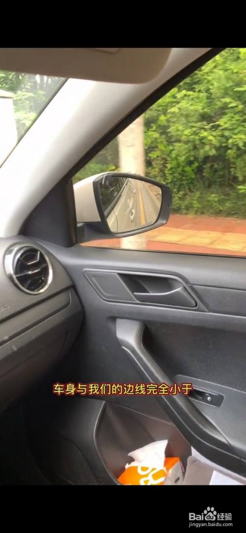 7.我们来看我们的倒车镜,确定车身与我们的边线完全小于30公分直接停车