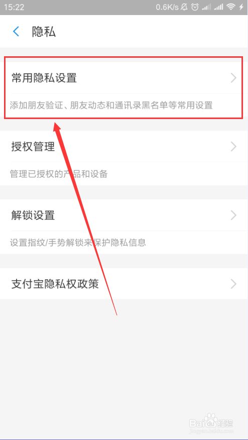 在“常用隐私设置”页面中,找到“通讯录黑名单”选项,进入之后即可查看到该账号拉黑的支付宝用户。