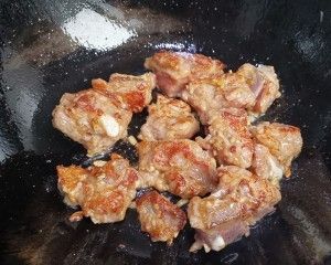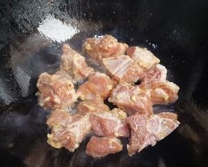 锅倒少许油,放入腌好的排骨煎一下