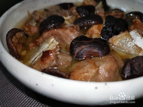 排骨摆入碗里,再摆上香菇,放电压力锅隔水蒸30分钟