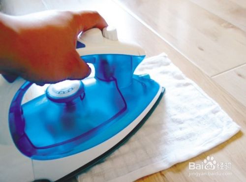 然后用手将湿布紧紧压在墙纸上,另一只手握住热熨斗压在在湿布上进行烫熨