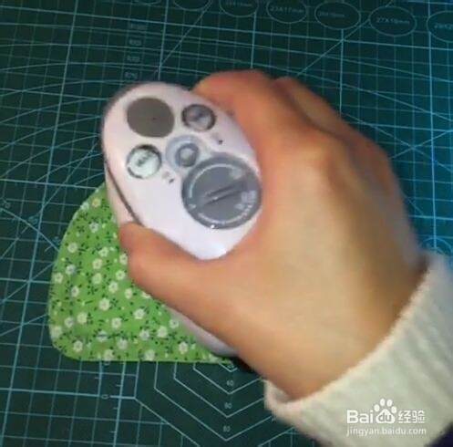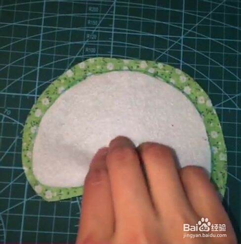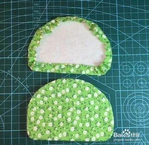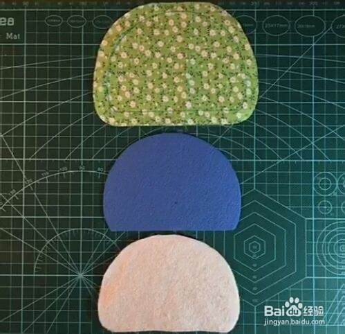 接着将剪好的半圆形内里衬布涂上热熔胶,粘上一块辅棉,辅棉大小要比内里衬布的半圆形整体小一圈。