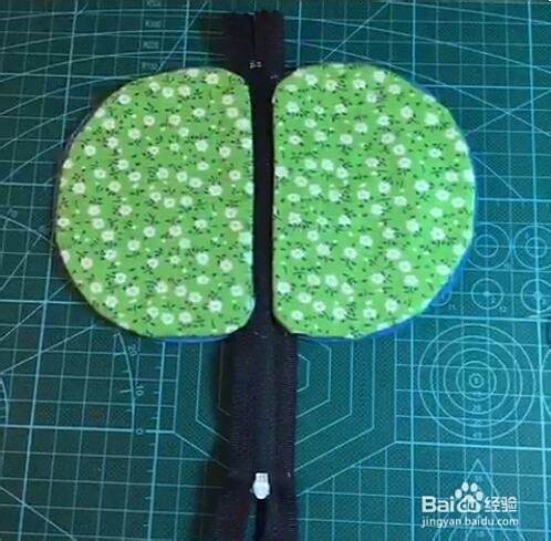 拉链拉开从反面将两半钱包缝合到一起,再从拉链口翻面。