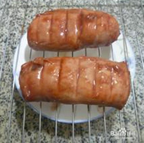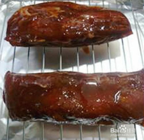 然后,将腌制好的里脊肉放在烤架上