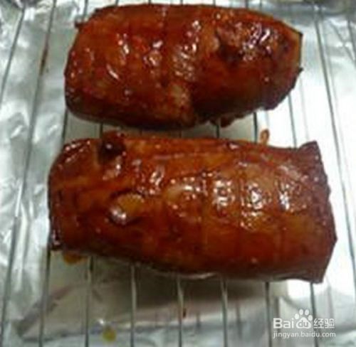 取出,翻动一下,再刷上一些叉烧酱