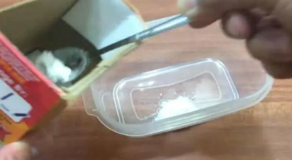 首先我们要准备一个容器,用勺子挖两勺食用小苏打。