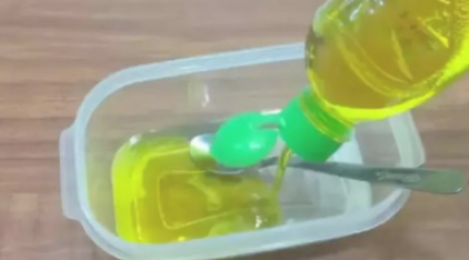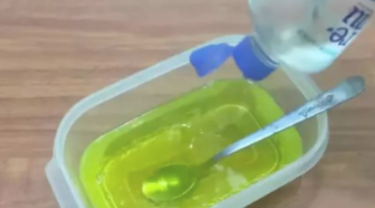 在容器中倒入洗洁精,洗洁精的牌子任意,我们主要用它来增加水晶泥的润滑程度。
