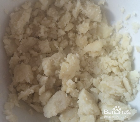 土豆泥加少许盐、胡椒粉搅拌均匀。