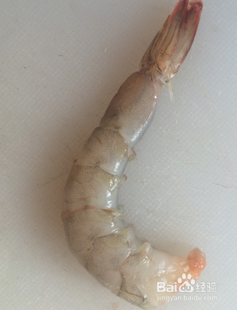 先处理虾,去掉虾头,留下虾尾,剥掉虾壳,挑去虾线。