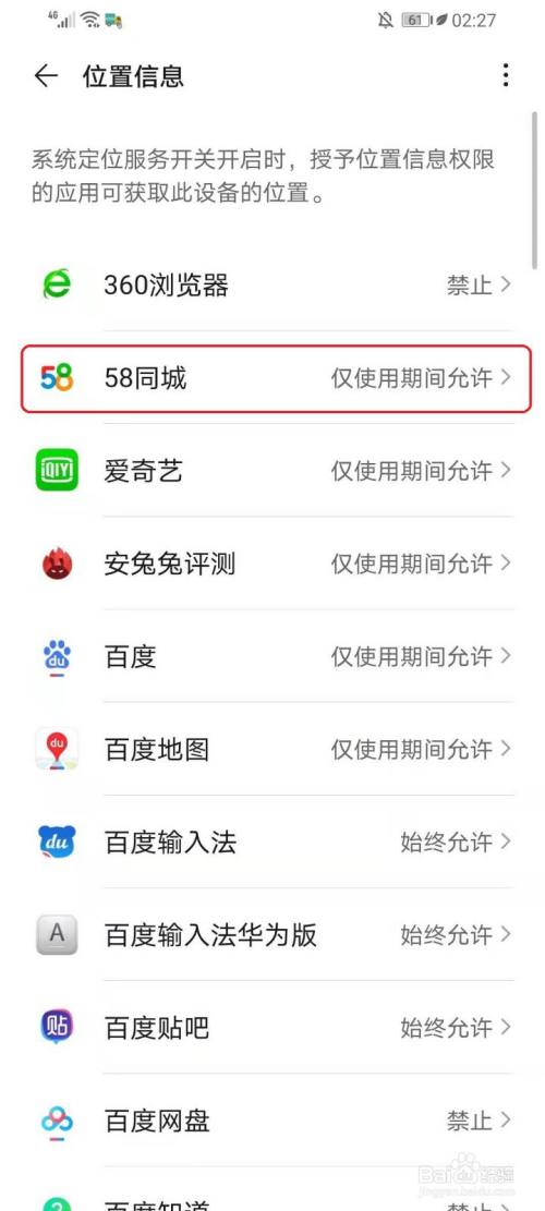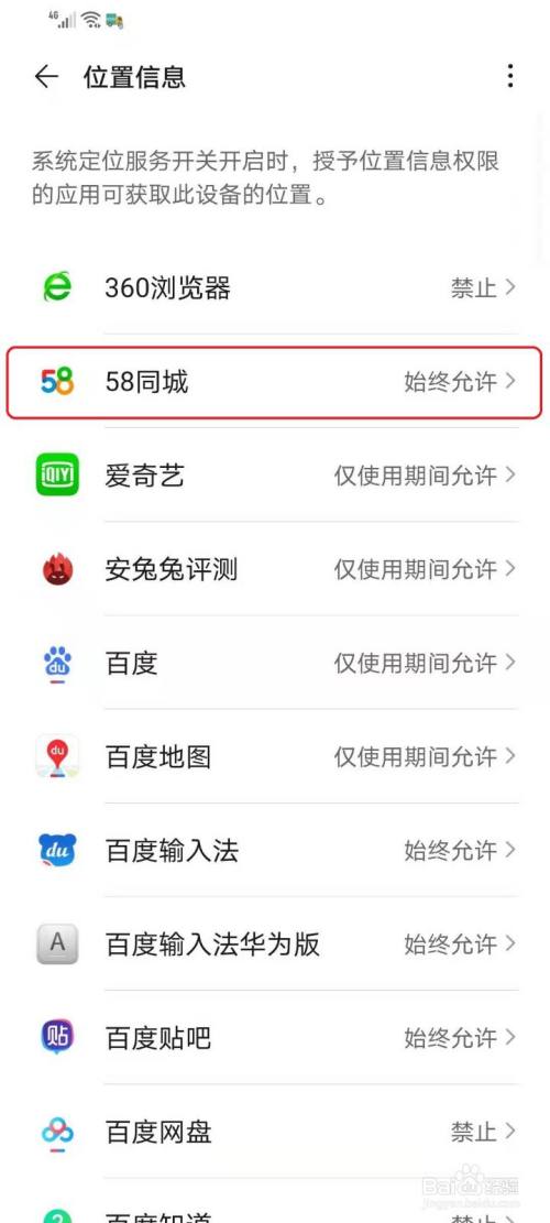 选择要设置的app,例如点击【58同城】。