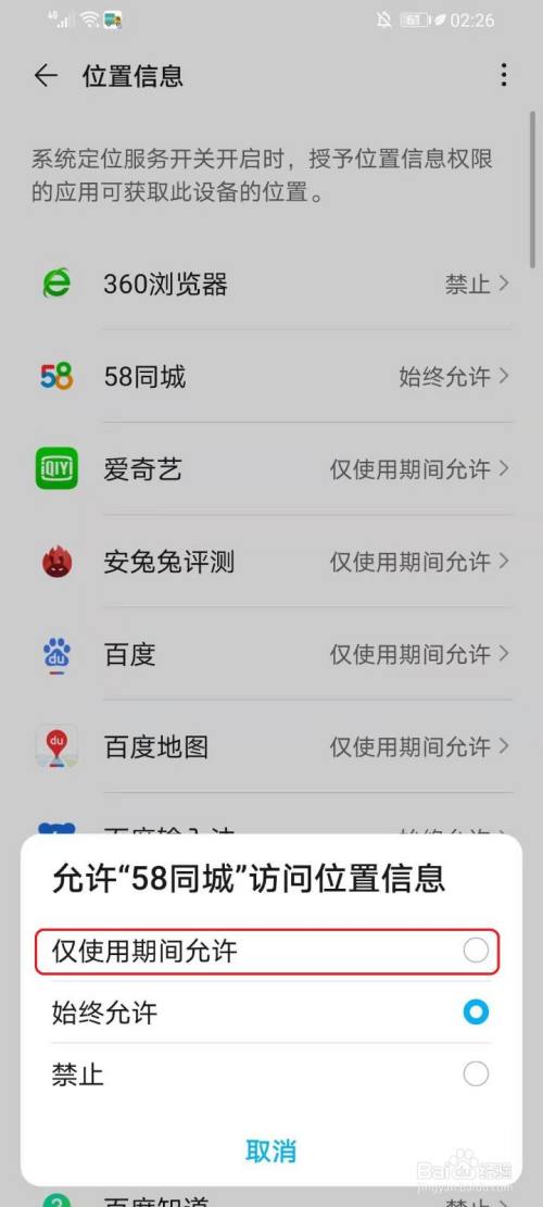 方法/步骤二:设置app的位置访问权限