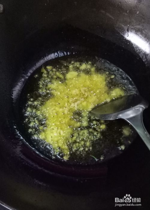 锅洗干净,烧干,加猪油,热化,就倒入大蒜和姜末,炒出香味。