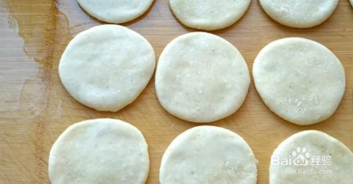 再用擀面杖擀成圆形面片。不喜欢圆形的可以将之前长方形的生坯直接擀薄一点就可以了。