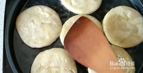 平底锅或者电饼铛刷点油,开小火预热。油微热的时候下入生坯,不用盖盖子。
