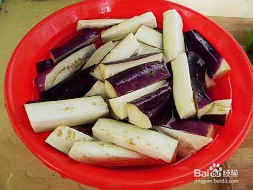 茄子切条状用盐水泡5分钟