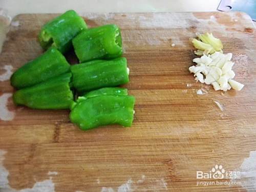 辣椒切断,姜蒜切碎
