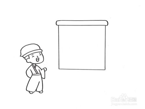 首先在画面的上方画上一个小方框,在左下角画上一位诗人,戴着帽子,穿着长袍。