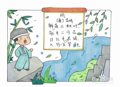 最后,我们在方框中写上《风》古诗,漂亮的风古诗配画就完成了。