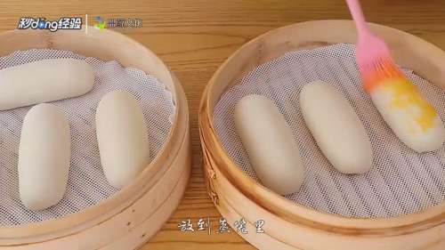 8将做好的面长条放入笼中,再刷100g鸡蛋液。