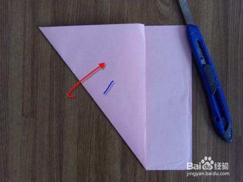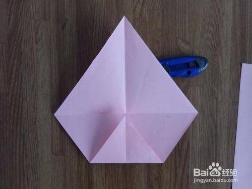 展开上面折好的一角,沿中线折向新形成的边线。折叠过程及效果如下: