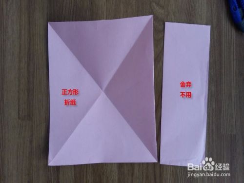 如果没有方形折纸,可按下图方法裁制,裁制的同时也便形成了对角线折痕。如下图。