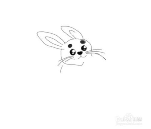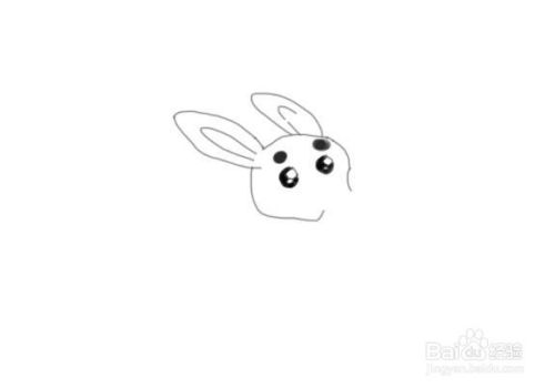 画好兔子的头部之后,再在头部上面再画出兔子的眉毛,然后再画出兔子的两只眼睛,如图所示: