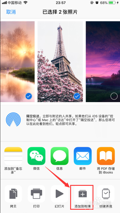 3.在添加到相簿界面,选择要添加到的相簿即可。
