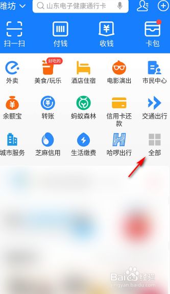 手机打开支付宝,在首页点击全部。