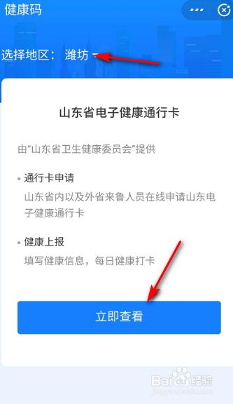 进入健康码页面后,选择所在地区后,点击立即查看。