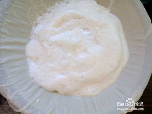 打蛋盆上盖好豆腐布,把豆浆倒进去过滤