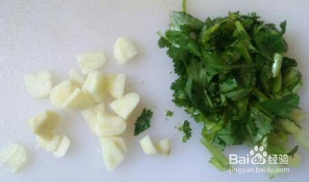 放香菜和蒜末,出锅装盘,一道美食就做好了。